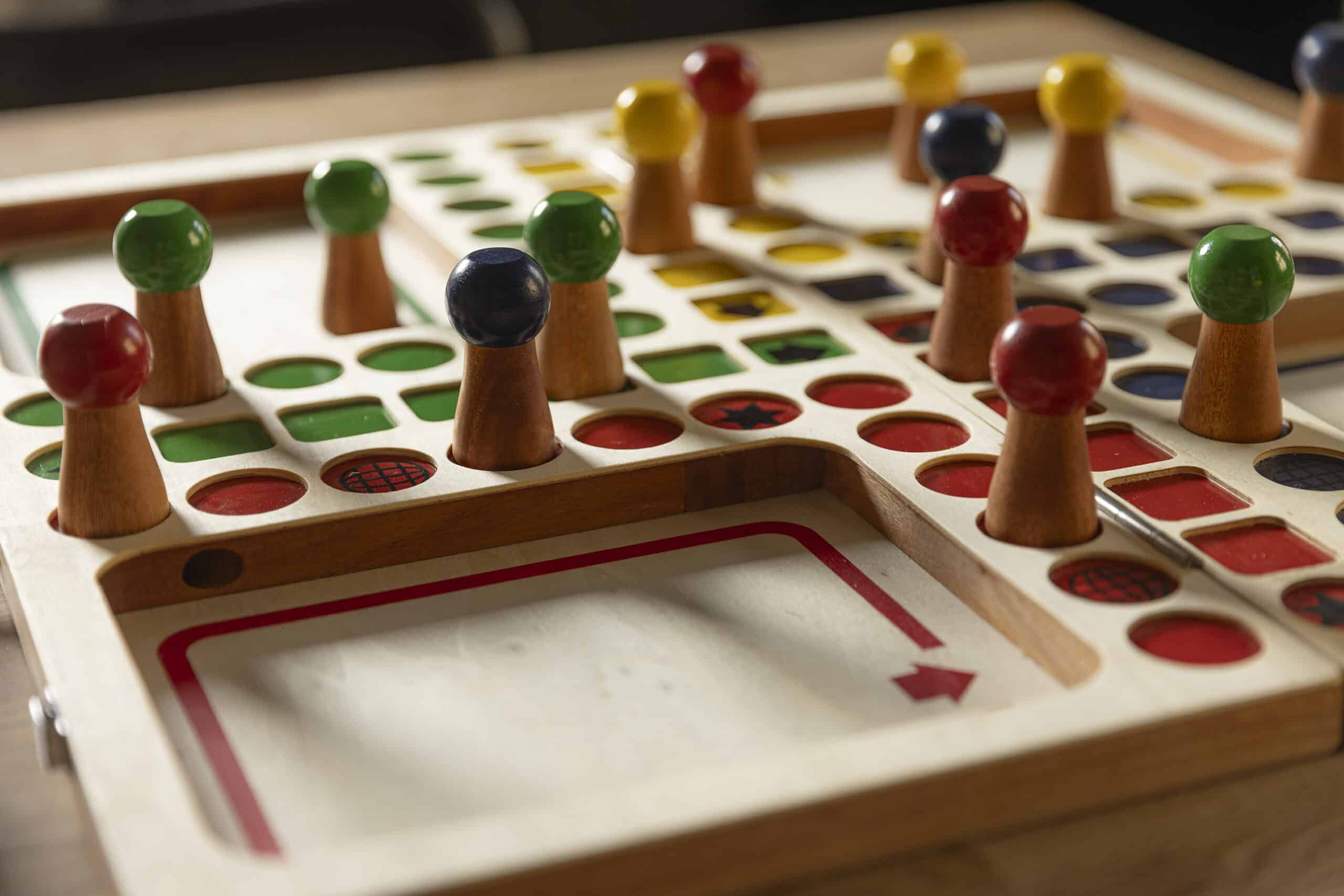 Kæmpe Ludo i kuffert. -Så er der styr på brikkerne!